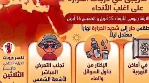تتوقع الهيئة العامة للأرصاد الجوية، أن يشهد اليوم الإثنين 13 أبريل 2026، استمرار الارتفاع التدريجي في درجات الحرارة على أغلب الأنحاء.