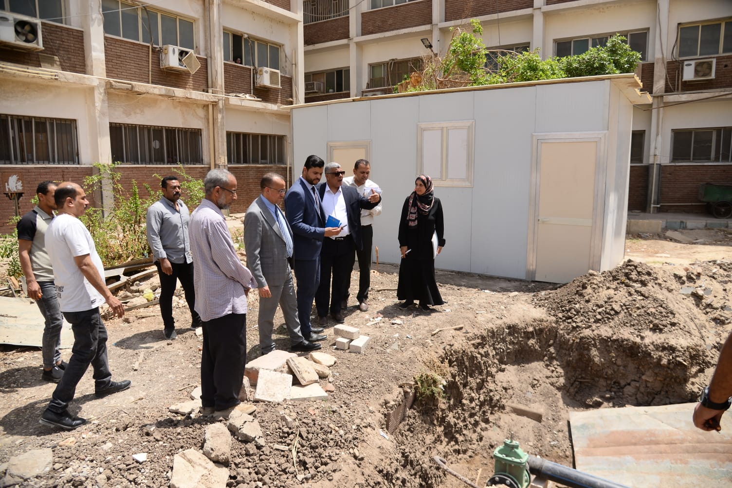رافق الوفد خلال جولته، الأستاذ الدكتور خالد عبد العزيز، مدير المستشفى الرئيسي، والمهندسة عبير بخيت، مساعد المستشار الهندسي للشئون الهندسية بالمستشفيات الجامعية، والمهندس محمد ثابت، مدير عام الشئون الهندسية بالجامعة، والأستاذة سناء محمد، مدير عام الإدارة الاستراتيجية بالجامعة، والأستاذ ميخائيل حنا، مدير إدارة التخطيط بالجامعة، والأستاذة ولاء محمود، مدير إدارة المتابعة بالجامعة، والأستاذ عصام عبد الحكيم، مدير إدارة الأزمات والكوارث بالجامعة، والمهندسة سوسن إبراهيم، مدير عام إدارة الإنشاءات، والدكتور محمد عبد العال، مدير الإدارة الاستراتيجية بالمستشفيات الجامعية، والأستاذ أبو الحسن أحمد، باحث بإدارة التخطيط بالجامعة.