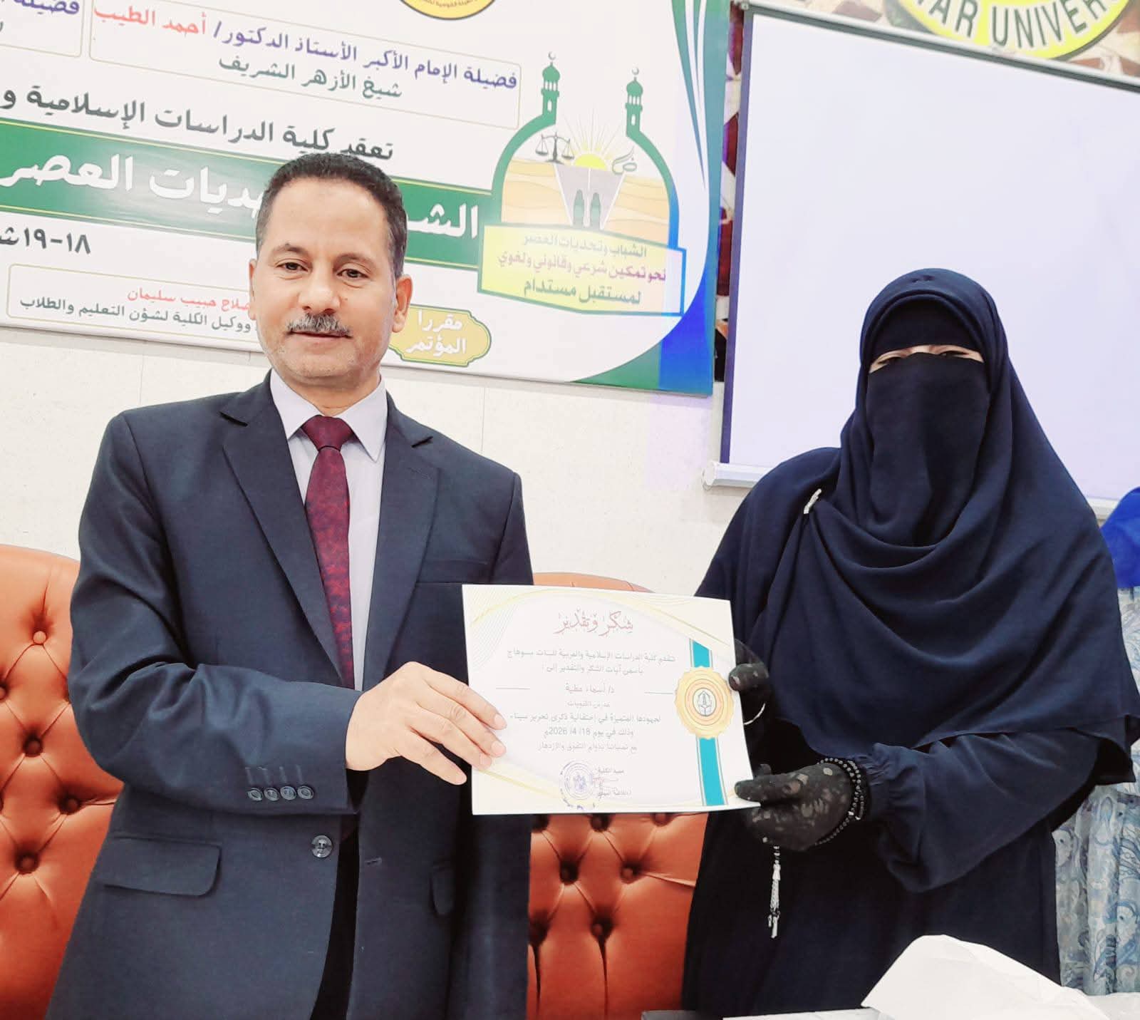 برعاية فضيلة الأستاذ الدكتور سلامة داود، رئيس جامعة الأزهر، وفضيلة الأستاذ الدكتور محمد عبد المالك، نائب رئيس الجامعة للوجه القبلي، نظمت كلية الدراسات الإسلامية والعربية للبنات بسوهاج برئاسة الأستاذة الدكتورة فاطمة المهدي عميدة الكلية، احتفالية مميزة بمناسبة ذكرى تحرير سيناء، بحضور الأستاذ الدكتور صلاح حبيب، وكيل الكلية لشئون التعليم والطالبات، والأستاذ الدكتور جمال يوسف، وكيل الكلية للدراسات العليا والبحوث، وتحت إشراف معيار المشاركة المجتمعية.