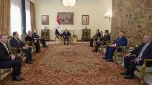 استقبل السيد الرئيس عبد الفتاح السيسي، اليوم، مسعد بولس كبير مستشاري رئيس الولايات المتحدة الأمريكية للشؤون العربية والأفريقية، وذلك بحضور الدكتور بدر عبد العاطي وزير الخارجية والتعاون الدولي والمصريين بالخارج، والسيد اللواء حسن رشاد رئيس المخابرات العامة، وروبرت سيلفرمان القائم بأعمال سفارة الولايات المتحدة الأمريكية في القاهرة، وسكوت سانفورد المستشار السياسي بسفارة الولايات المتحدة الأمريكية، ودانيال فوليرتون وجيفري سيلين من الجانب الأمريكي.