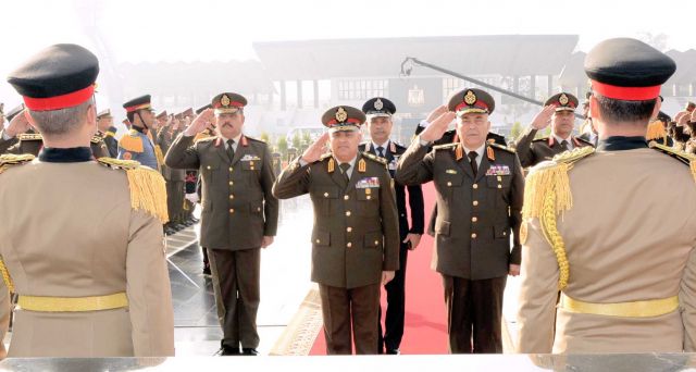 وفي نهاية الاحتفال قام القائد العام بمصافحة عدد من قدامي القادة السابقين وكبار قادة القوات المسلحة .
