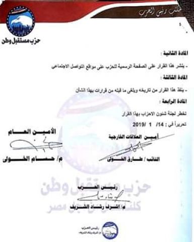 صرح النائب طارق الخولى أمين العلاقات الخارجية بحزب مستقبل وطن بأنه قد تم اعتماد تشكيل هيئة مكتب أمانة العلاقات الخارجية المركزية بالحزب.