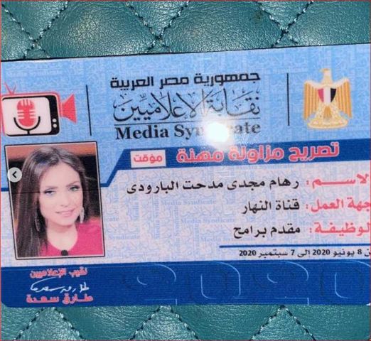 حصلت ريم البارودي على تصريح نقابة الإعلاميين لتسطتيع مزوالة وإعادة تقديم برنامجها على قناة "النهار".