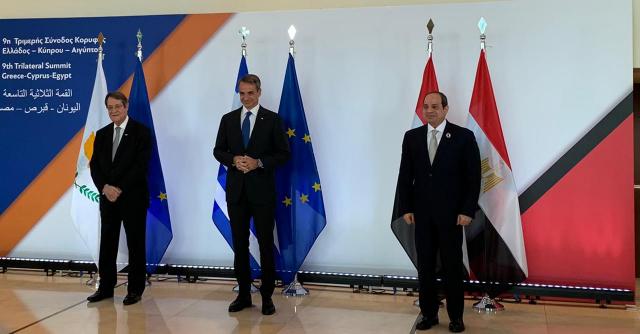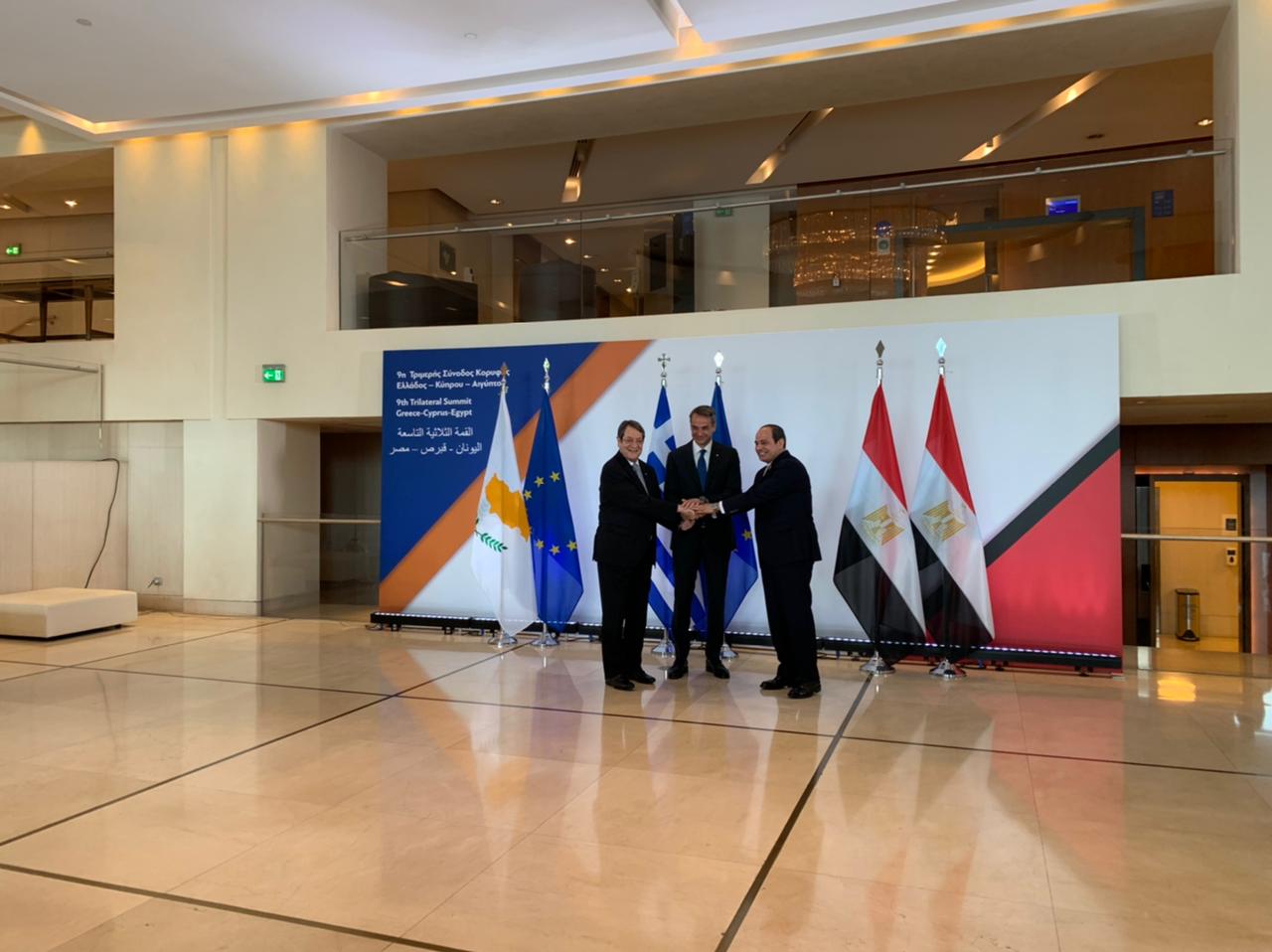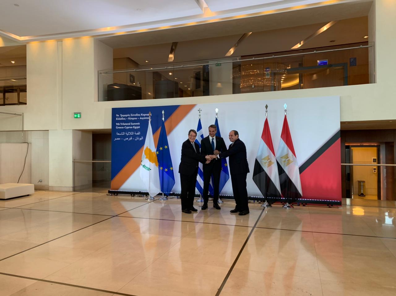 الرئيس السيسى يلتقط صورا تذكارية مع رئيس قبرص ورئيس وزراء اليونان قبل القمة