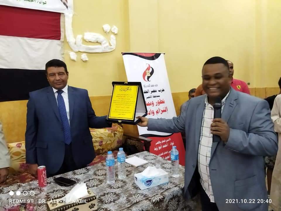 تنفيذا لتوجيهات الدكتور وليد دعبس رئيس حزب مصر الحديثه واللواء /احمد فهمي الامين العام للحزب ومعالي اللواء /احمد ابو زيد الامين العام لحزب مصر الحديثه بمحافظه الاقصر.