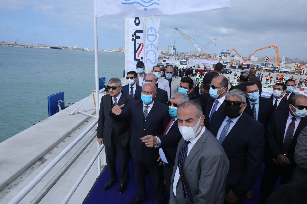 بعدها توجه وزير النقل لتفقد موقع مشروع المحطة بحضور إستشارى المشروع و الشركات المصرية المنفذة حيث تابع الوزير سير الأعمال و شدد على الإلتزام بالمخطط الزمنى التنفيذى تمهيداً للتشغيل التجريبى للبضائع العامة و الرورو فى النصف الأول من العام الحالى إستعداداً للتشغيل الكلى فى أكتوبر القادم. واشاد وزير النقل خلال لقائه بالعاملين بالمشروع بالمجهود المبذول من فريق العمل بالشركة المصرية للمحطات متعددة الأغراض الإستشارى و الشركات المنفذة لتنفيذهم للمشروع و الإنتهاء قبل المدة المحددة للتنفيذ لأعمال البنية التحتية