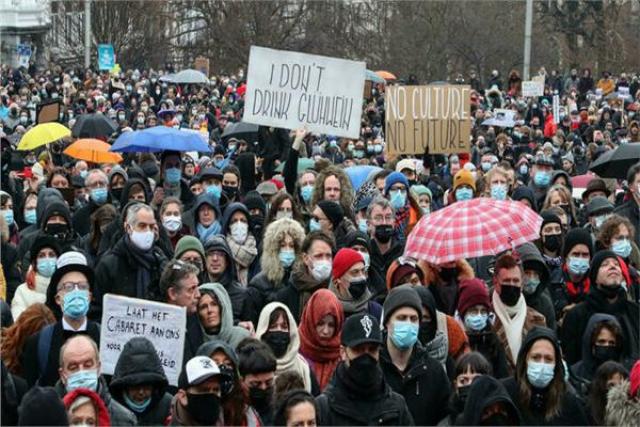 تظاهر الآلاف في بروكسل، اليوم الأحد 26 ديسمبر، احتجاجًا على قرار السلطات إغلاق قاعات العروض لوقف انتشار المتحورة أوميكرون.